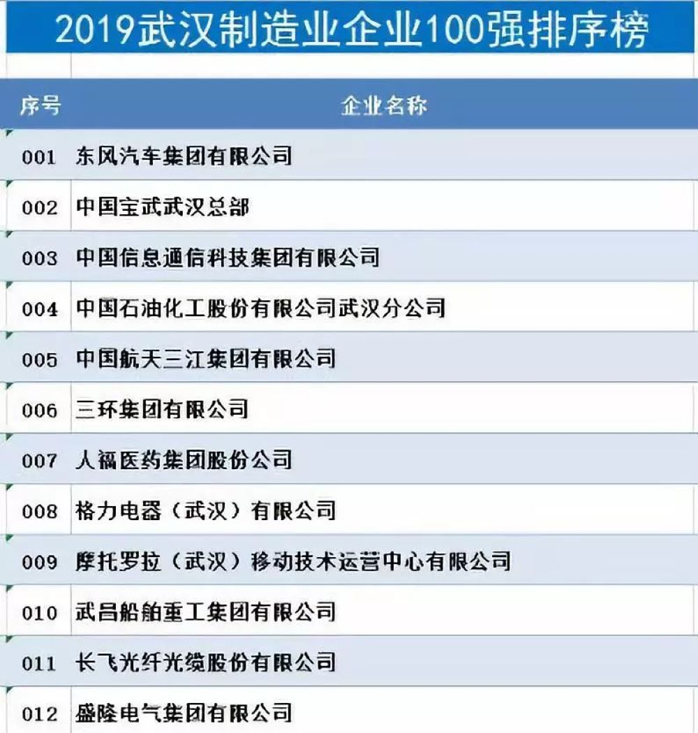 本次会议发布了2019武汉企业100强(综合百强)、制造业企业100强(制造业百强)、服务业企业100强(服务业百强)排序榜,该排名由武汉企业联合会、武汉企业家协会编制,并联合武汉广播电视台、长江日报报业集团、武汉发展战略研究院共同发布。